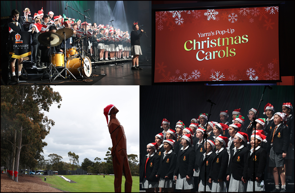 YARRA’S FESTIVE SPIRIT Melbourne’s unpredictable weather may have postponed Carols@Yarra, but the festive spirit was alive and well on campus! Our talented musicians and choirs delighted the students and staff with a pop-up lunchtime Christmas concert, filling the grounds with music and cheer. If you’ve visited recently, you’ll have noticed the beautiful red tulle bows tied around the gums along Foundation Drive, adding a vibrant splash of Christmas colour. Even the Visionary joined in the celebrations! Wishing you all a very Merry Christmas and a joyful festive break. #PopUpCarols #MerryChristmas