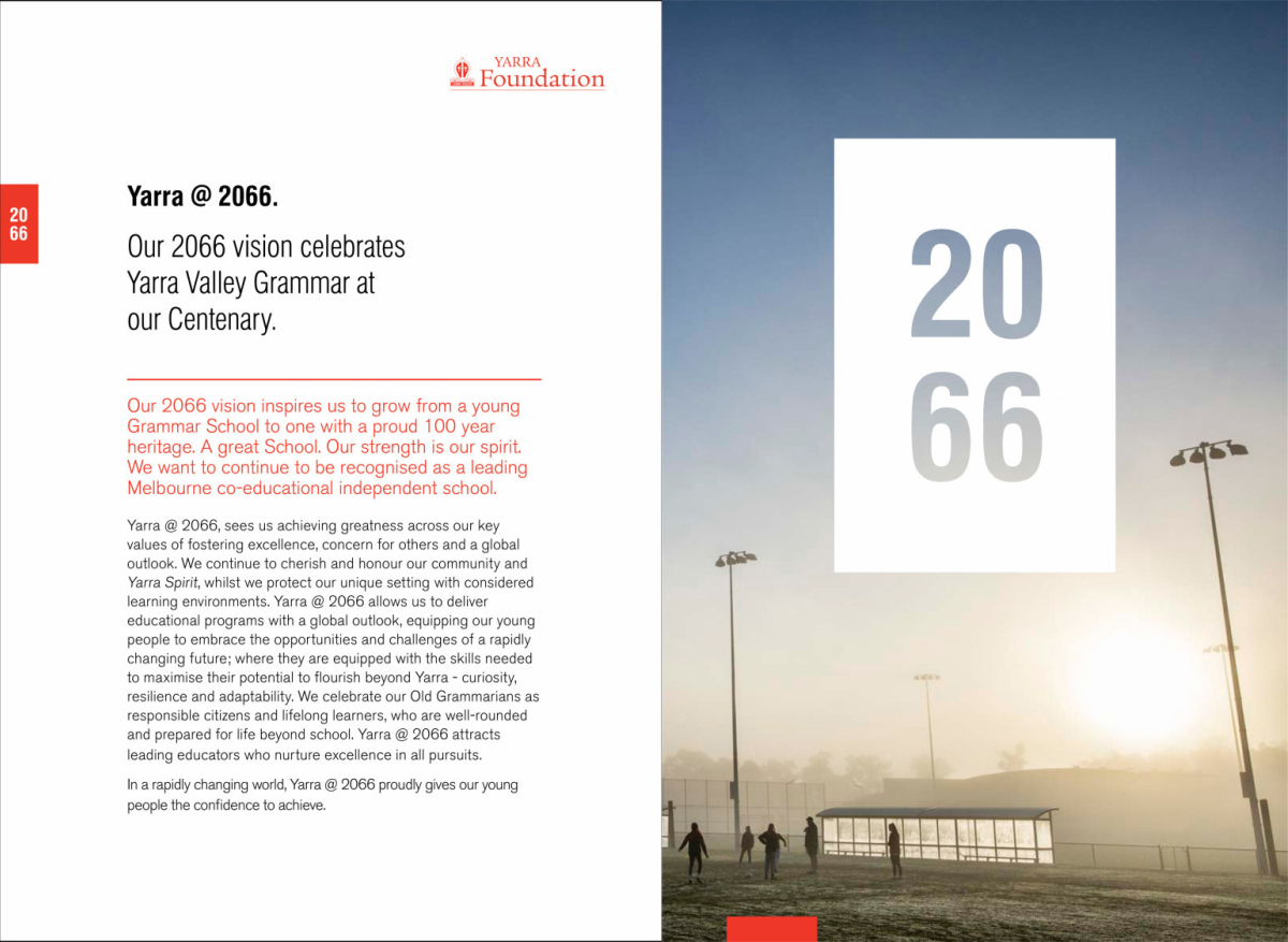 Workshops were held with students, staff and parents including both Yarra Old Grammarians (YOG) and past parents. The resulting Yarra @ 2066 vision forms the crux of what the Yarra Foundation is working towards.